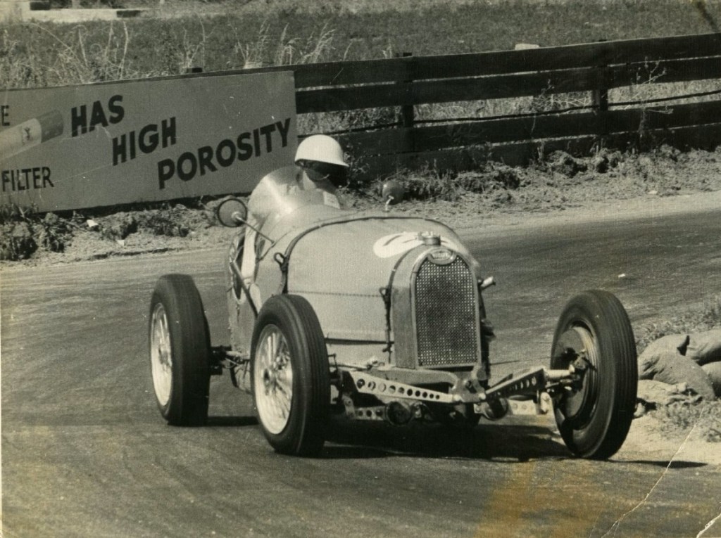 John Cummins’ Bugatti T37A Holden at Bathurst in 1961. Note the Bellamy independent front suspension so characteristic of #37332 (unattributed)