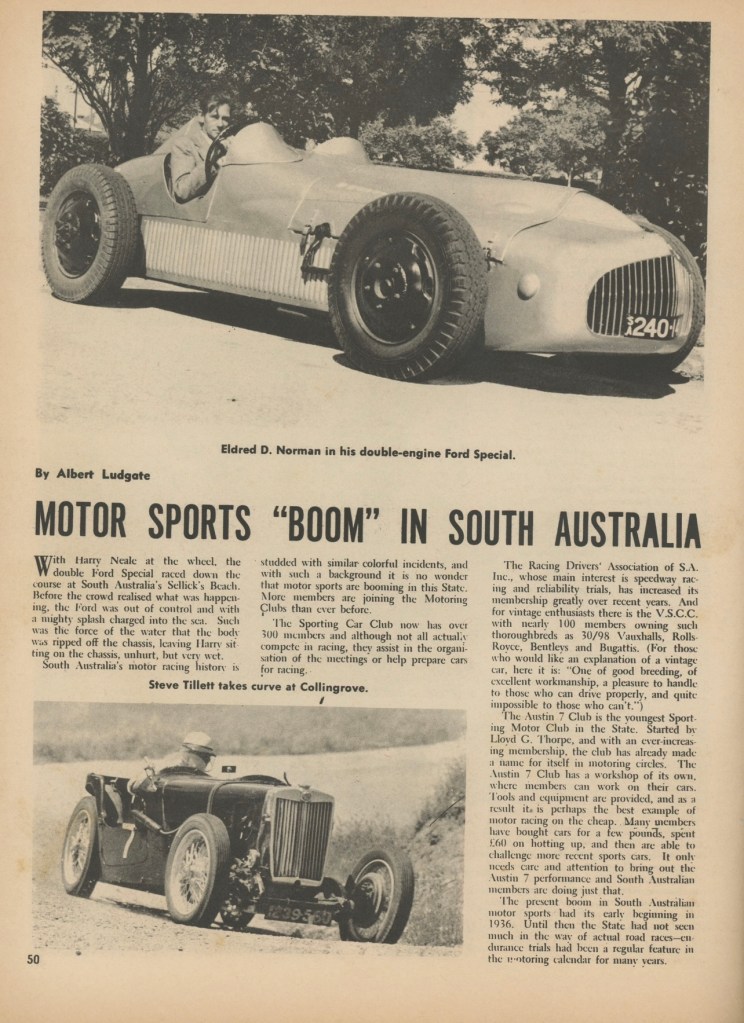 Tony Johns sent me this wonderful article about the motorsport state of play in South Australia in 1954, many thanks.