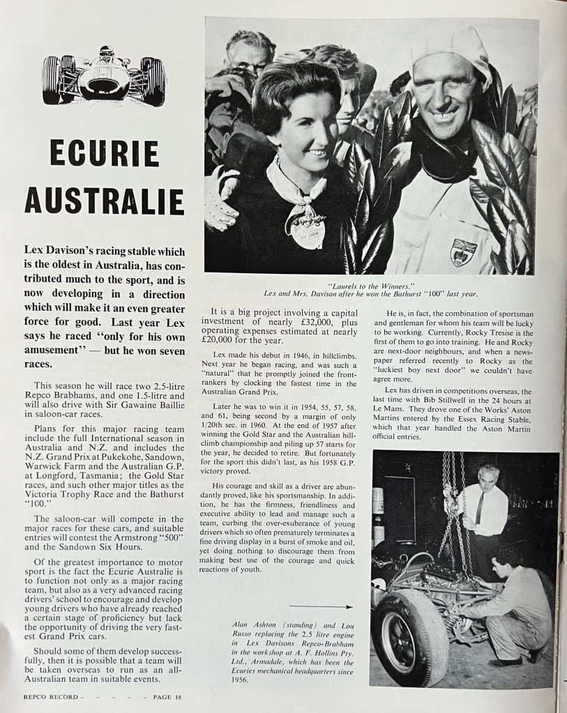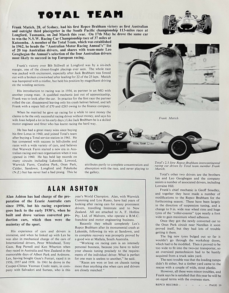 Not so long ago the driver depended on his mechanics to change tyres and refuel the car during a race, and they depended on the team manager to control them sensibly, while the designer stood by to see any flaws in the design of his car both from the driving angle and the pit-work angle. Now the design is finished, the mechanics prepare the car, the manager organises the entry for a given race and then they sit back and watch the driver drive his short, but of necessity, concentrated race.