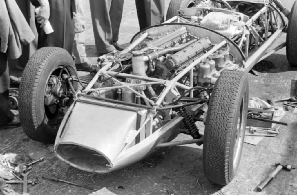 Vanwall remained unchanged, being set with a near-perfect design for the car in question, while B.R.M. changed to a fully-stressed space-frame of Chapman inspiration and naturally both Formula 1 and Formula 2 Lotus cars have the acme of lightweight space-frames.