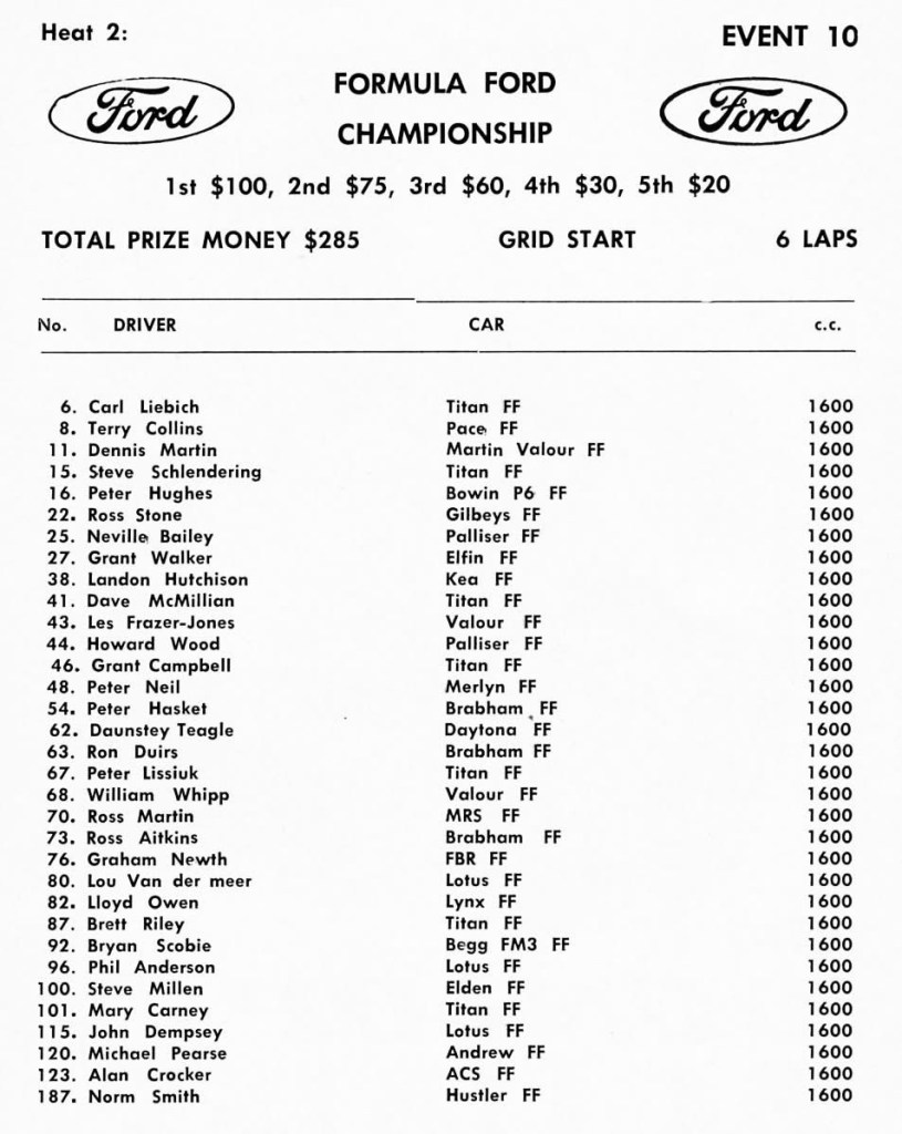 Max made his race debut with Mildrens in the February 2, 1969 Australian Grand Prix at Lakeside where he was sixth in the Mildren Alfa, four laps adrift of the winner, Chris Amon’s Ferrari 246T.
