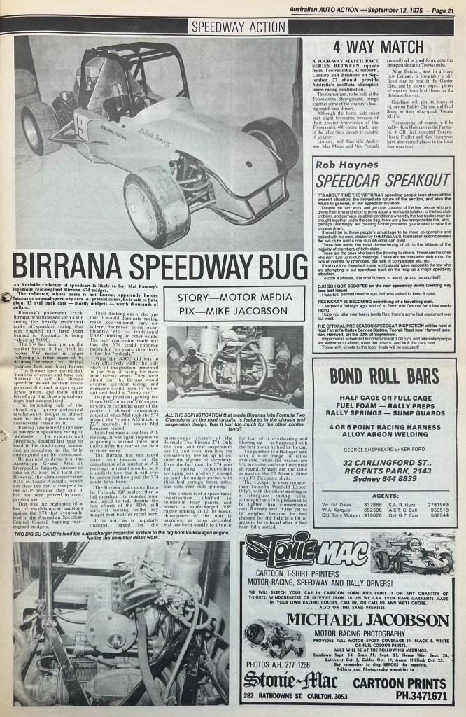 Greg Smith and his Mildren and Waggott archives, Bryan Henderson, Avalon photo taken by Geoff Searl, Australian Autosportsman, Dale Harvey, Mike Tyler, Central Western Daily, Richard Watson, Vin Sharp, John Barnes, Glenn Moulds