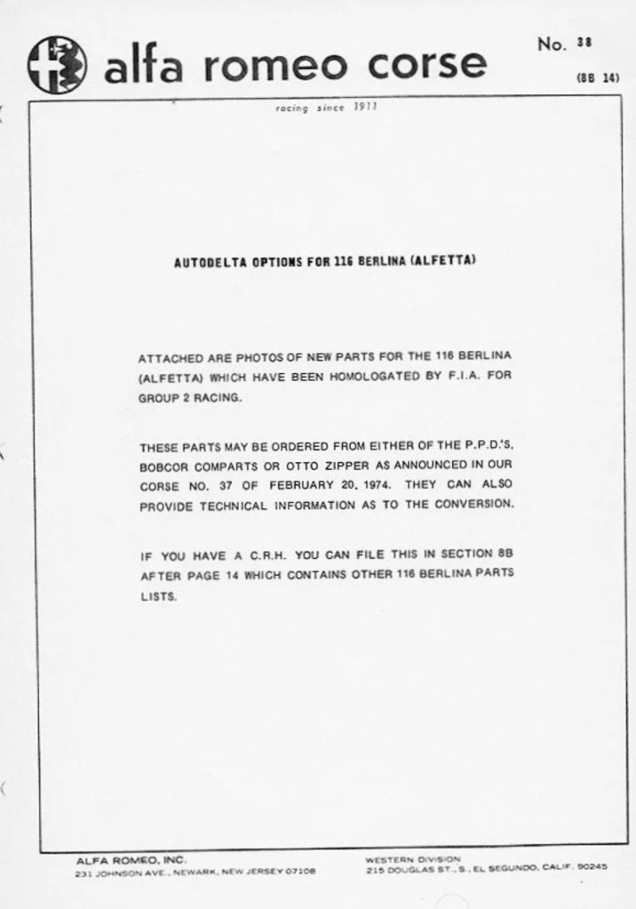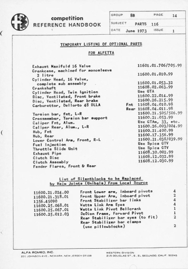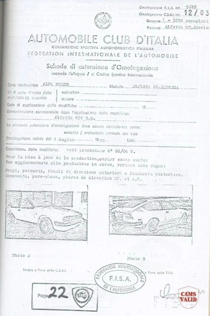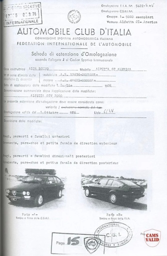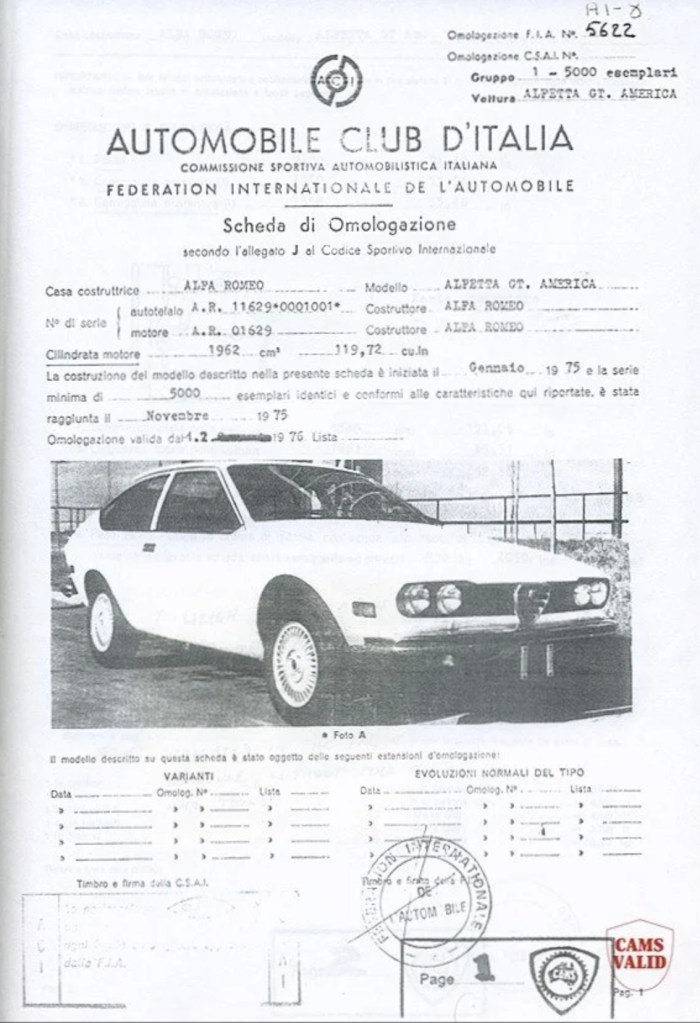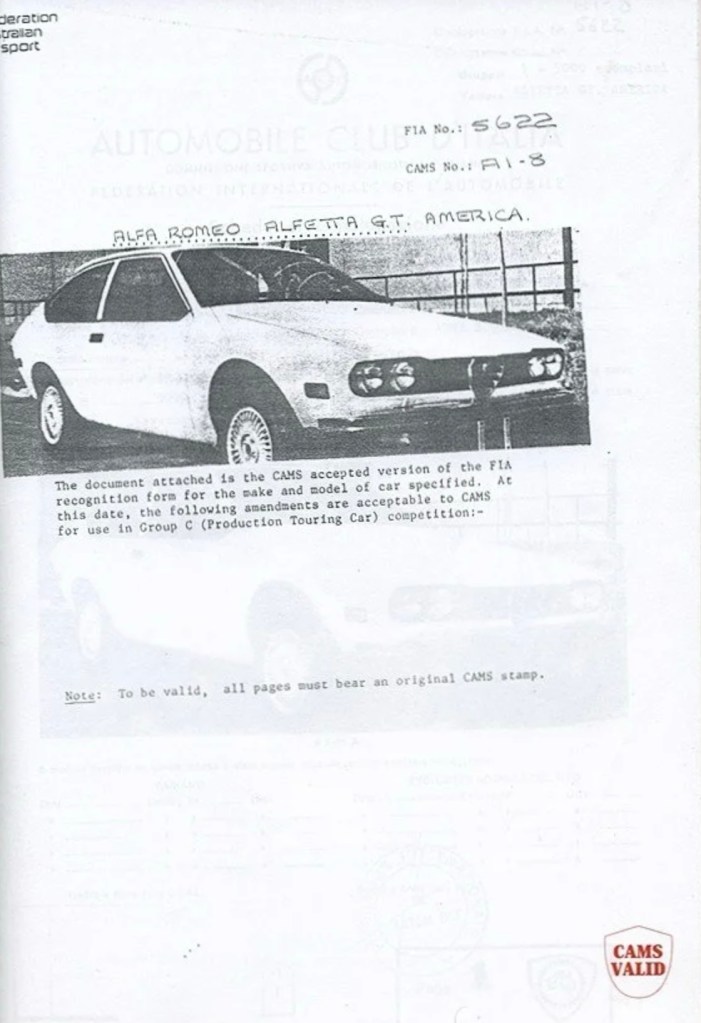 Alfa Romeo shipped 25 RHD Alfetta GTs equipped with the nasty, wheezy, Spica injected 2-litre engine calling them – see the FIA homologation documents below – the ‘Alfa Romeo Alfetta G.T. America’. They were essentially RHD versions of American Alfetta GTs devoid of the fugly-big bumpers fitted for that market, and of course later infecting us all..