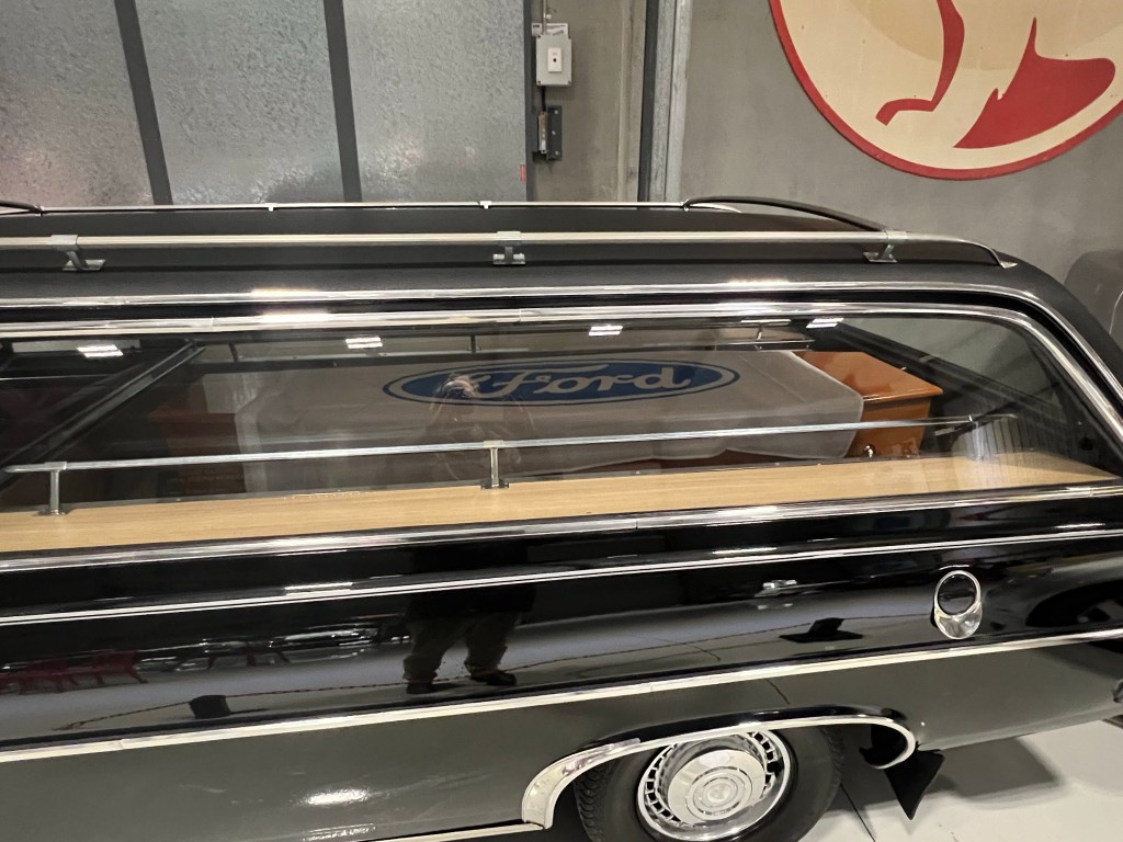 The skeleton in the front seat was predictable enough, but the Ford banner atop the coffin in the rear was amusing to the Blue Oval Brigade present!