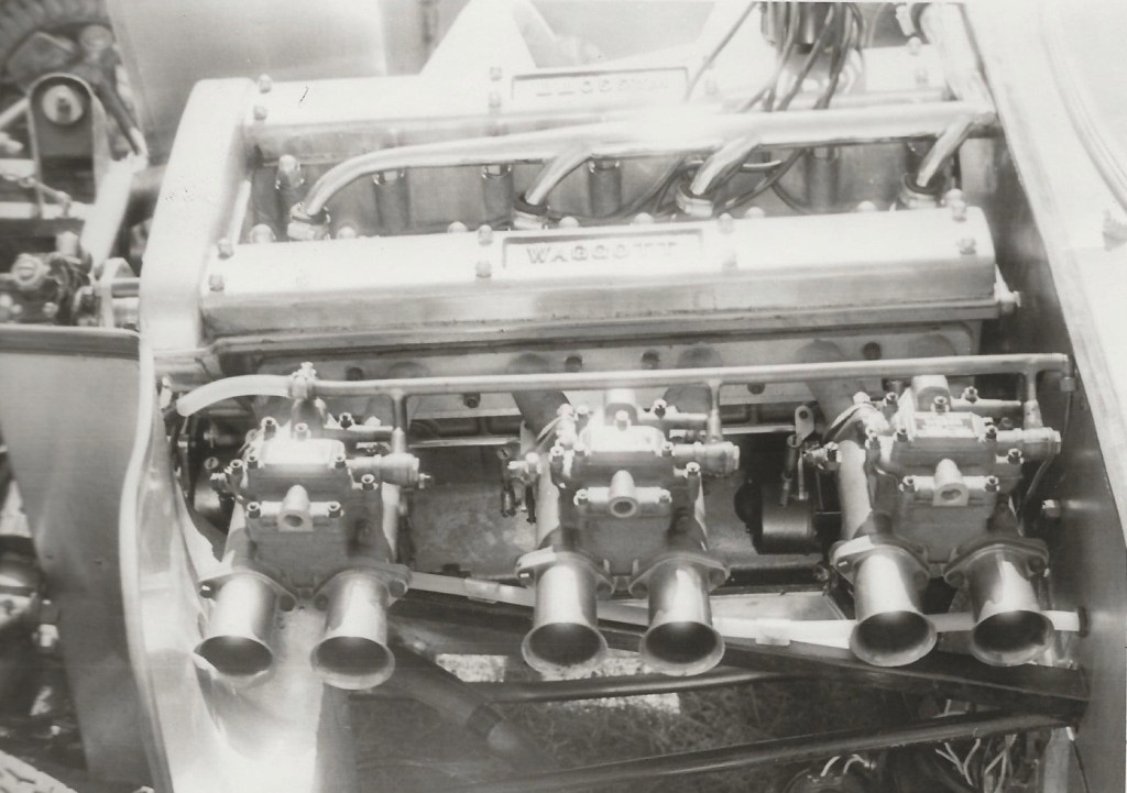 The head is a ‘Heron type’ which has the combustion chamber in the piston and not in the cylinder head. The head has the Inlet ports at 30degrees and the hydraulic valve lifters are replaced with solid lifters. It is fitted with an inlet manifold similar to the E-Type Jaguar and has three SU carburettors. Two other manifolds were tried out with a Stromberg and another with a 4-barrel Holley carburettor.