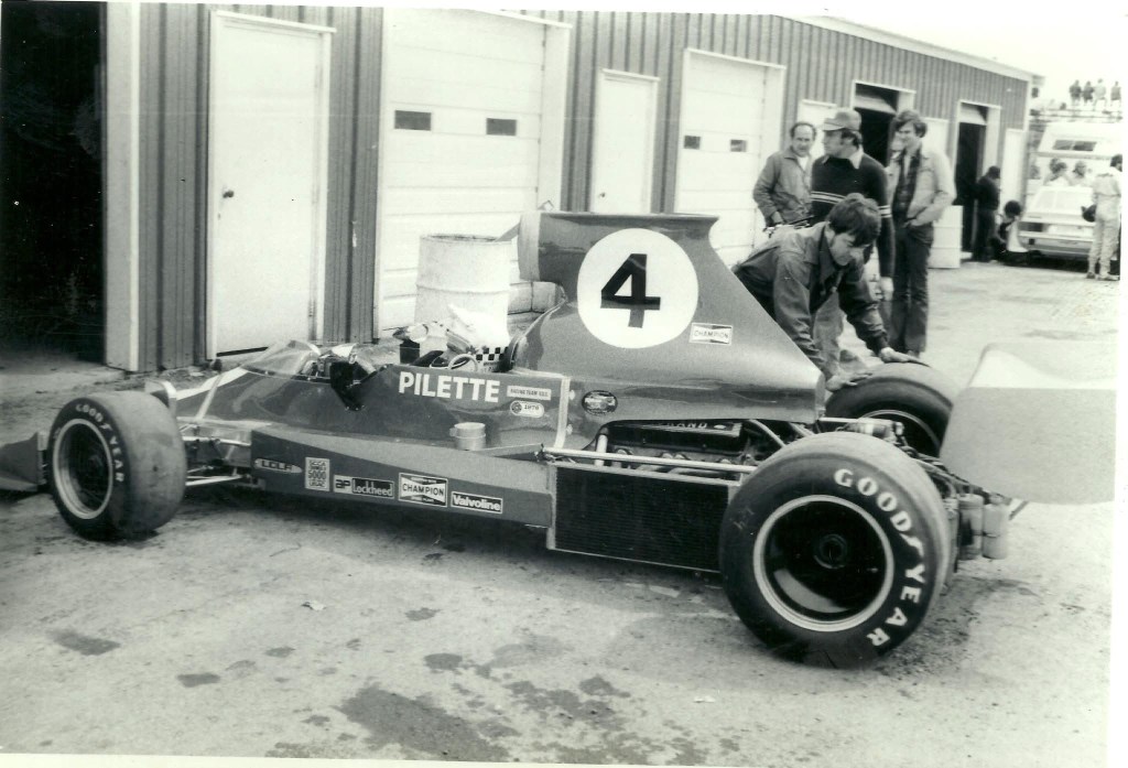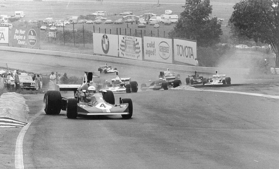 Teddy Pilette leading the field in the wet at Watkins Glen in ? 1976 DNF on lap 14 with engine failure (Lola Heritage via T Pilette)Warwick Brown, T430 Riverside 1976 and below (unattributed)
