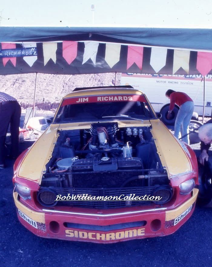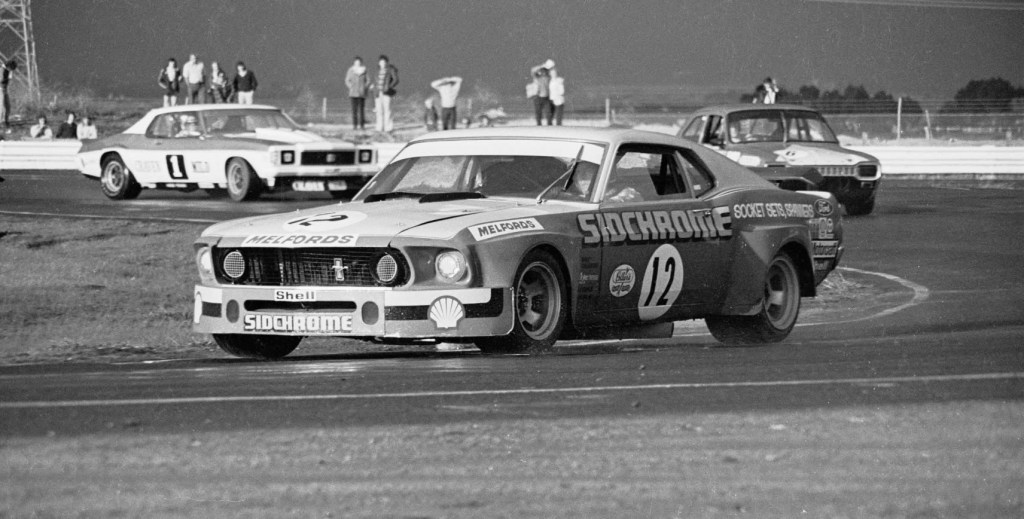 I was at Sandown on the dull, wet, cold Sandown July 6, 1975 weekend that Jim Richards debuted his Ford Mustang Boss 351, he won twice in front of local hot-shots, including Allan Moffat’s Ford Capri RS3100, John McCormack’s Chrysler Charger Repco-Holden V8 and others.