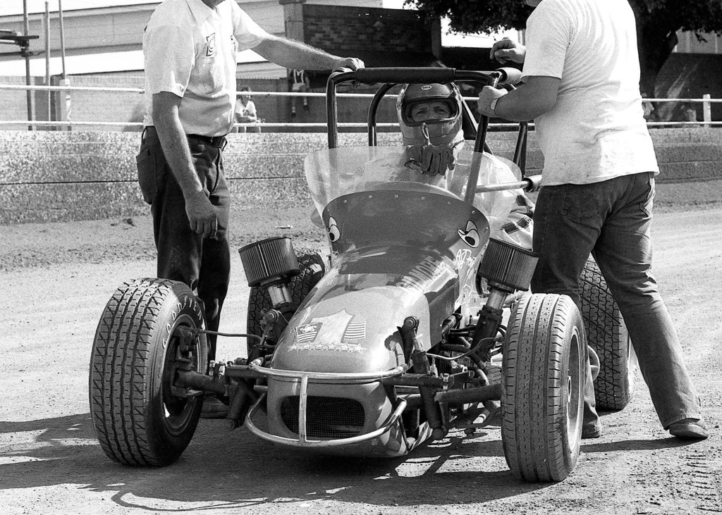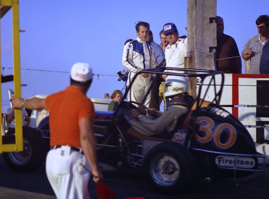 He’s being looked after by Teddy Mayer on the grid at Virginia above. Car #1 is the Charlie Kolb Merlyn Mk3 Ford, while the front-engined red/white Stanguellini Fiat has Pierre Mion at the tiller.