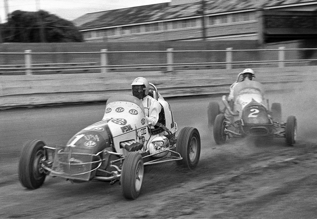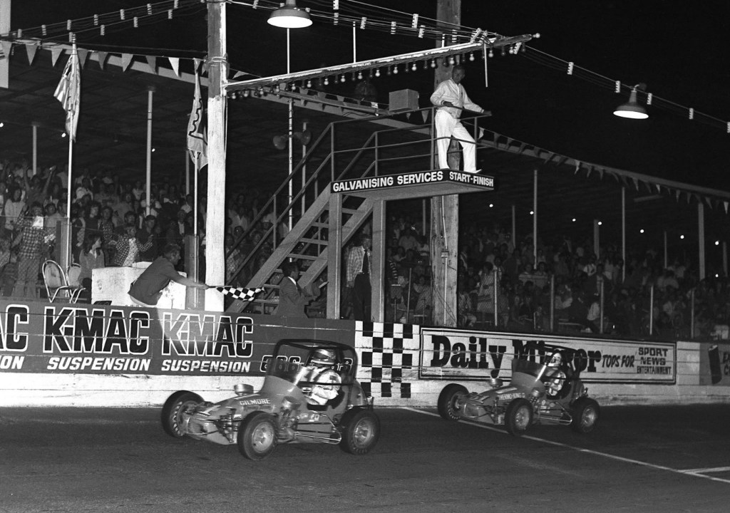 Kevin Bartlett posted this shot of him chasing Ian ‘Pete’ Geoghegan in KB’s Morris Minor 1000 – ‘one I bought from the NRMA write-off yard with only superficial damage’ – on Bob Williamson’s ‘Old Motor Racing Photographs-Australia Facebook page.