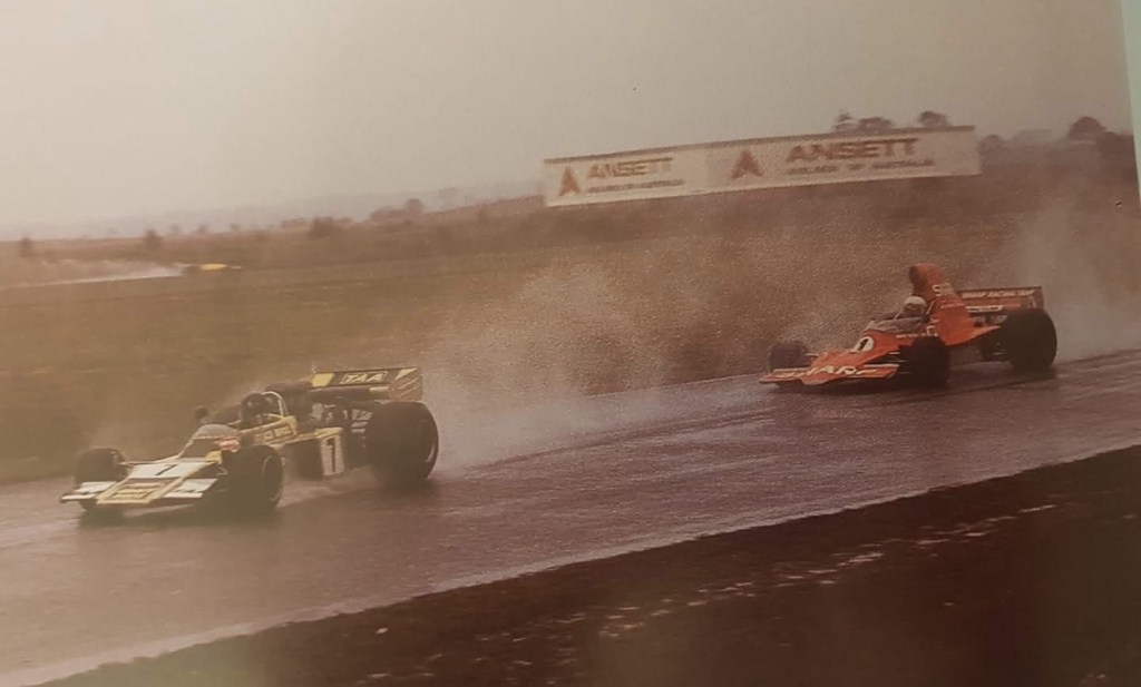 The Kiwi is in his Lola T332 Chev and alongside is Jon Davison’s jet-black Matich A50 Repco-Holden. It must have been spectacular folks, anyone see it?