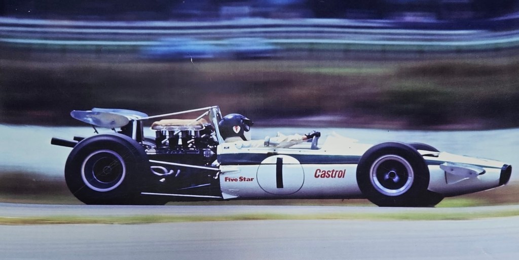 His mount was the Scuderia Veloce Brabham BT23A Repco 740 2.5 V8 vacated not long before by Greg Cusack after his Longford Tasman accident. More on Scuderia Veloce here:https://primotipo.com/2022/03/07/bob-atkin-collection-1/