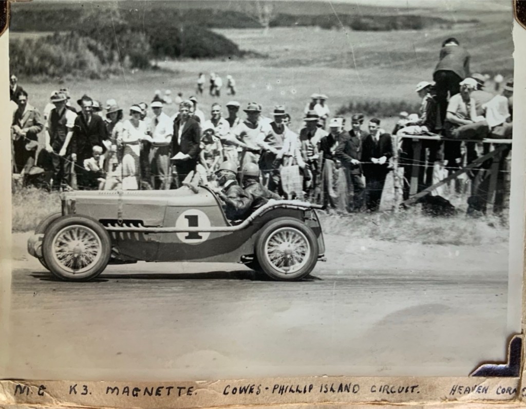 Love this shot of Bill Thompson and Bill Balgarnie’s MG K3 on the hop during the April 1, 1935 Australian Grand Prix, the last held on Phillip Island.