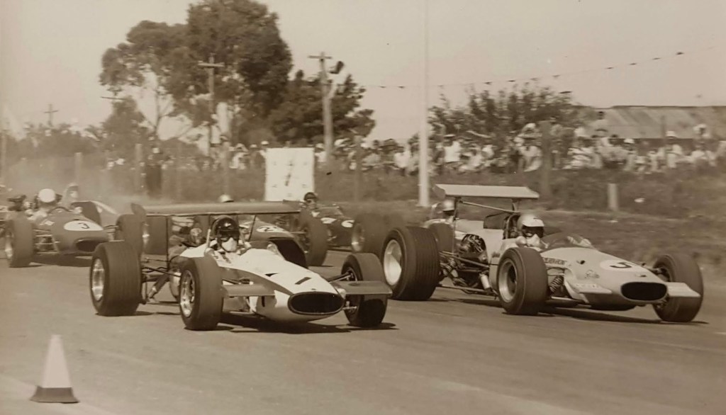 Leo won at Mallala from Kevin Bartlett’s Brabham BT23D Alfa Romeo, along side him on the front row and Glyn Scott, Bowin P3 Ford FVA in third.
