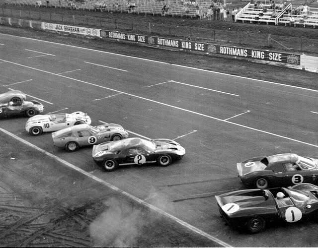 One for the touring car fans, start of a tourer race circa 1967 with Pete Geoghegan’s Mustang up the front together with Robin Bessant’s Lotus Cortina and Frank Gardner’s Alec Mildren Racing Alfa Romeo GTA. The tail of Bruno Carosi’s Jaguar Mk2 is there too.