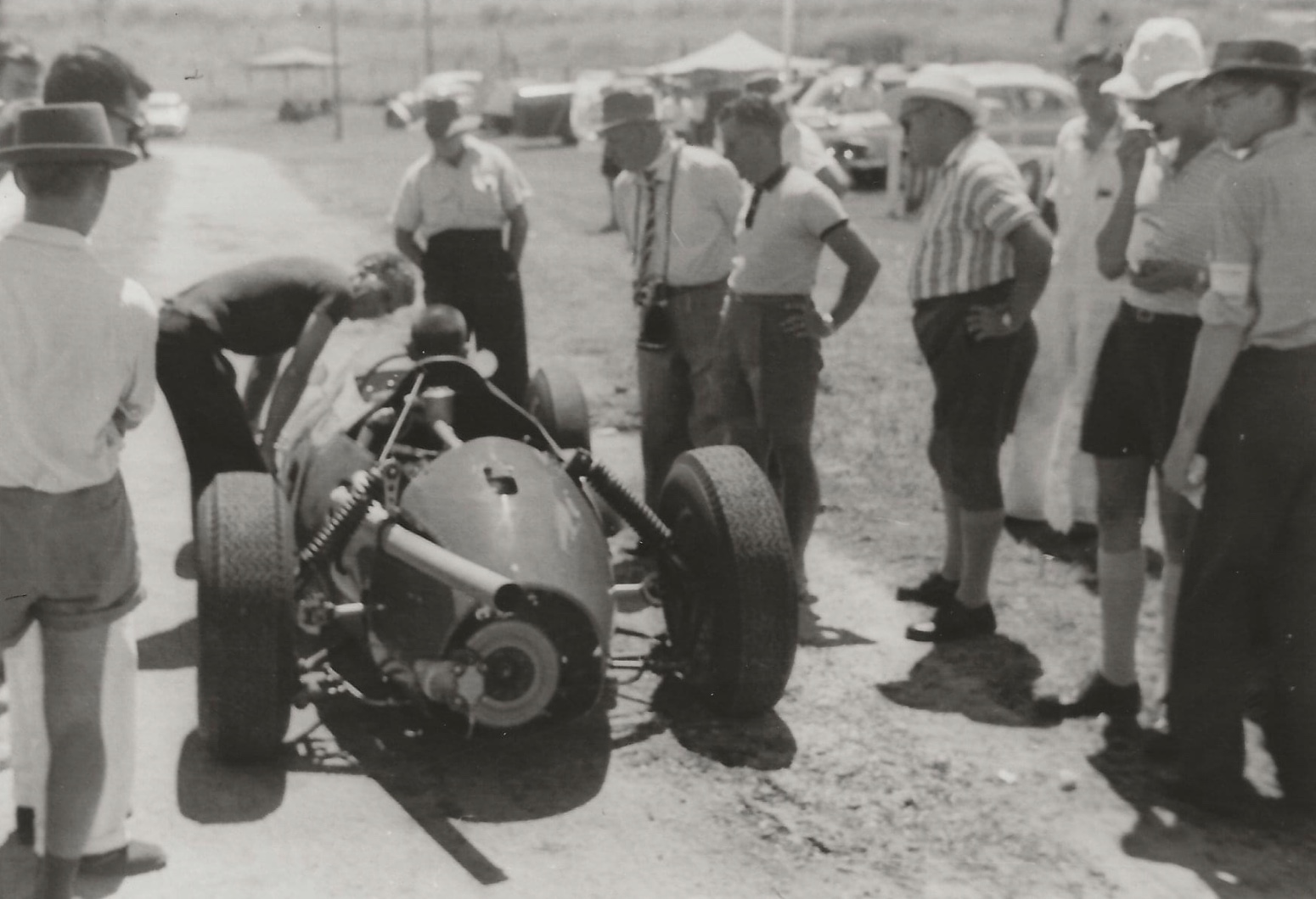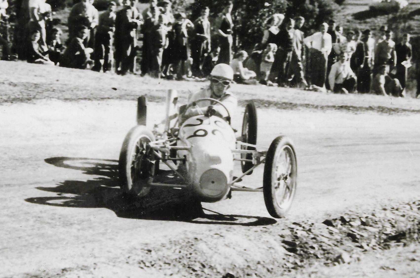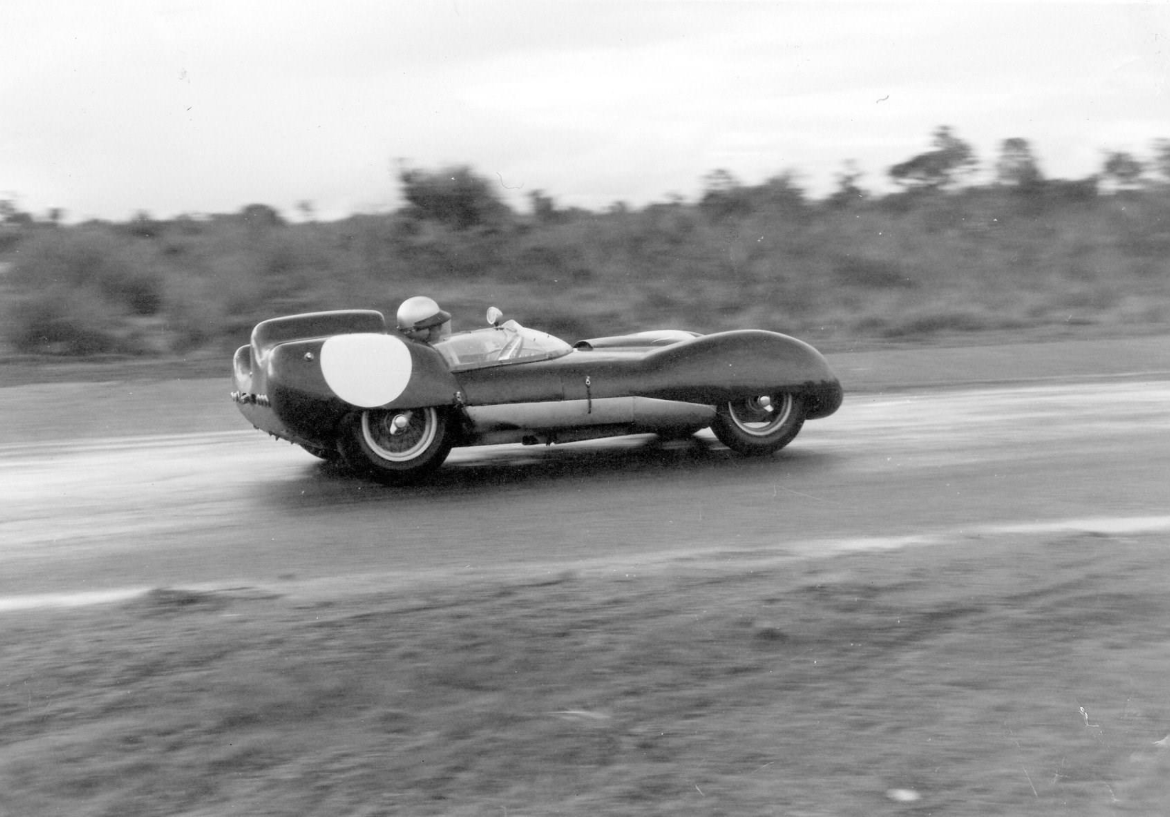Jack Godbehear, Ringwood orchardist, racer and great engine builder in his JGS-JAP 298cc (Jack Godbehear Spl) at Rob Roy on November 3, 1959.