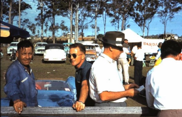 George Jamieson, Lotus 11 Climax FWA, chassis 358 on the grid above (and with fag below) during the 1960 Lowood, Australian Grand Prix weekend. See here for Mildren and the 1960 AGP:https://primotipo.com/2018/06/08/mildrens-unfair-advantage/