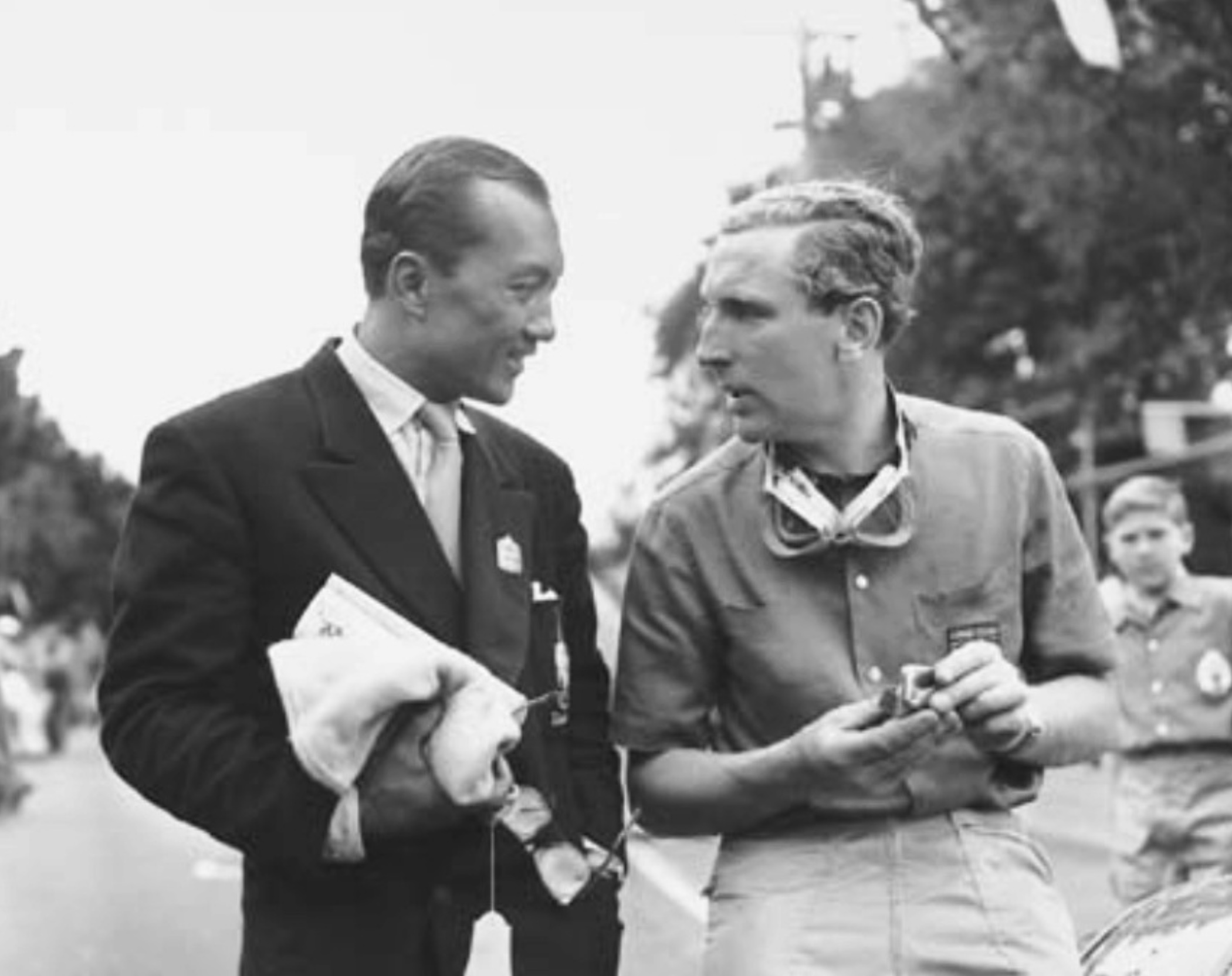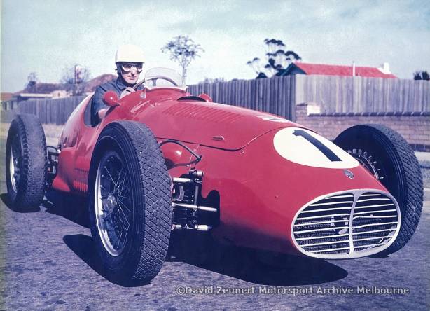 And below, with Bira before the start of the 1956 AGP at Albert Park. Graham Hunt outta focus at the right rear, I suspect.
