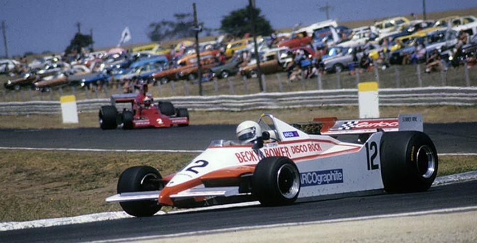 Garrie Cooper, Elfin MR9 Chev from Bob Minogue in the ex-Brown/Costanzo Lola T430 Chev at Calder on February 28, 1982, in the dying ‘Arco Graphite Days’ days of F5000, and not too long before Garrie’s sad, untimely passing. A bit about the Elfin MR9 here:https://primotipo.com/2016/06/10/elfin-light-aircraft/