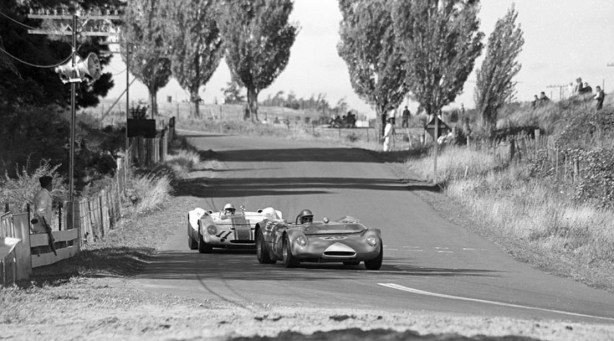 From the state of the sportscar art in 2016 to the equivalent in the late 1950s, the Lotus 15 Climax raced by owner Derek Jolly and John Roxburgh to victory in the Caversham 6 Hour in 1962 from the Dave Sullivan and George Wakelin Holdens.