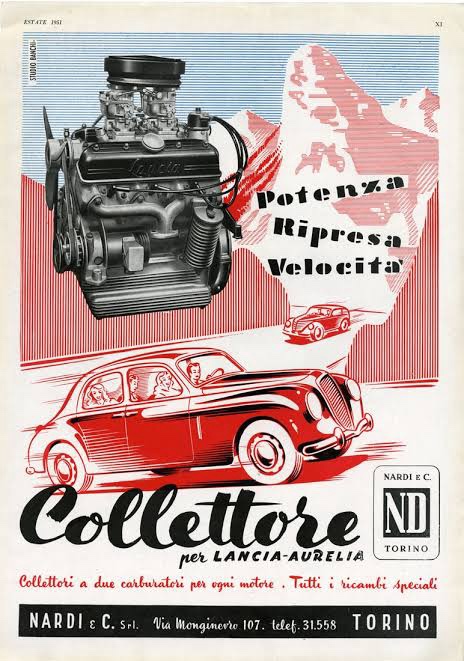 Beefy tubular frame and plenty of fuel capacity. 2-litre Aurelia V6 was fed, perhaps, by four single-choke Webers, magneto ignition? (lanciaaurelia.info)