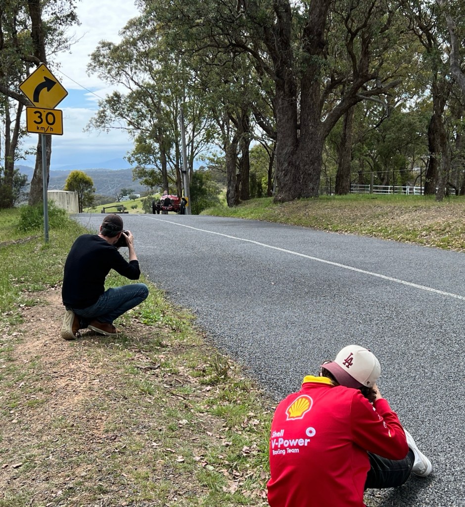 While I know the roads, I’m carefully choosing photo locations on the recce, static and on the move, so everybody’s use of time on the day is efficient. David Hewison, the photographer, makes the final calls on the day on the fly. I met Neill at his place at 8.30, Geoff, his brother, had the chase-car, and we went back there, having bought the client a relaxed el-cheapo meal in Eltham at about 4-ish. So, it’s a full day. In this case, Geoff trailered the car home, not that it needed it.