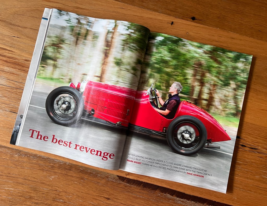 I’ve done a few of them now: David and Pat Mottram’s Lotus Elite Super 95, Bob King’s AC Ace Bristol, Richard Stanley’s Sunbeam 20/60, Rob Alsop’s Bugatti T23, Hyundai Australia’s i20N, and i30N on both Hobart’s road and track (Baskerville), Adam Berryman’s Bugatti T37A, and the Murdoch’s Alta 21S 1100 s/c, Alta 55S 2-litre s/c and now Lombard. Oh, to be doing it every week, wouldn’t that be grand!