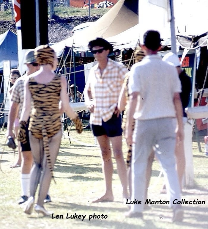 Jack Brabham is trying to focus on the start of the February 12, 1967, Lakeside 99 Tasman Cup round, but is set upon by a couple of tigers intent on getting into his tank…