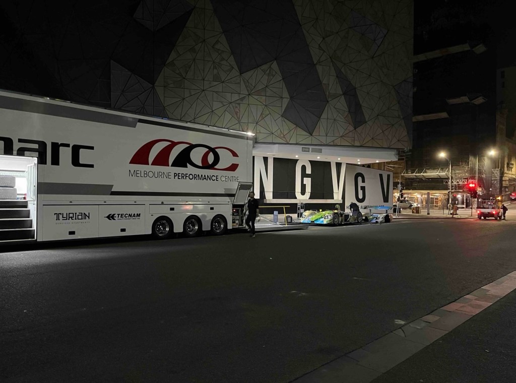 Night-time service depot for the Melbourne Performance Centre crew, who look after Audi customer racing in Australia. It’s at the south, dead-end section of Russell Street behind the Ian Potter Centre-National Gallery of Victoria.