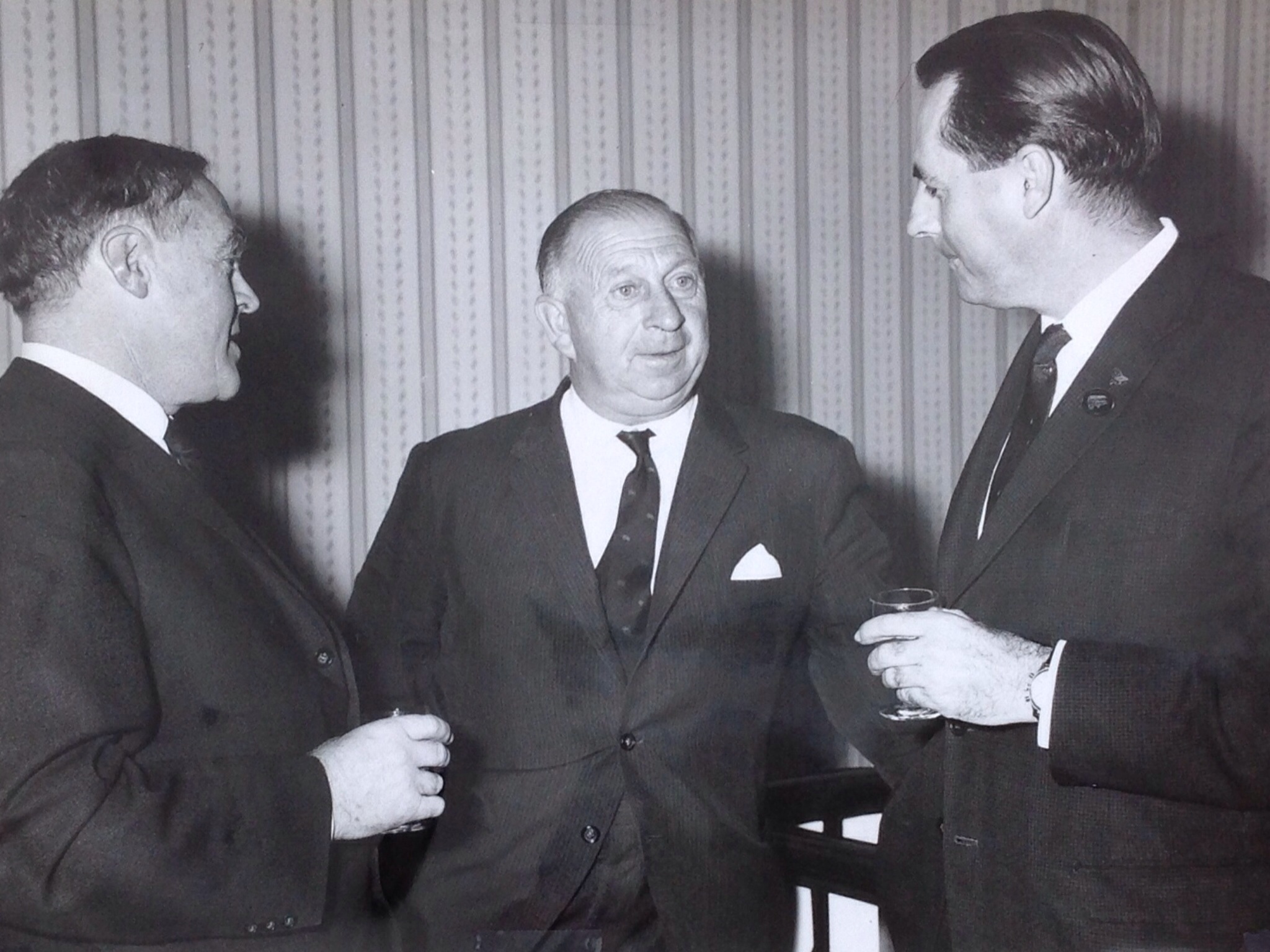 Repco Managing Director Charles McGrath (Knighted in 1968), Victorian Premier, Sir Henry Bolte and Jack Brabham at a function in early 1967 to recognise Repco/Brabham’s 1966 World Championships, or, in late 1967, to recognise Repco/Hulme’s 1967 World Championships! (Repco)
