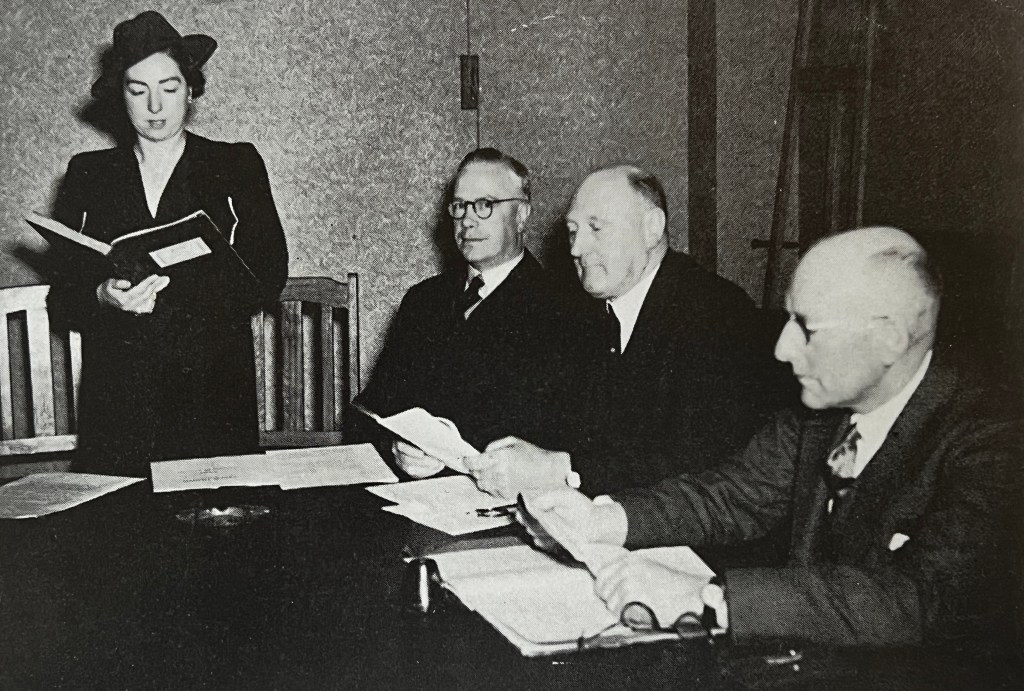 M Terdich, Company Secretary, and Directors J Martin, W Richardson and Geoff Russell at right during a Repco Ltd Board Meeting after the company’s 1937 Australian Stock Exchange listing (Repco)