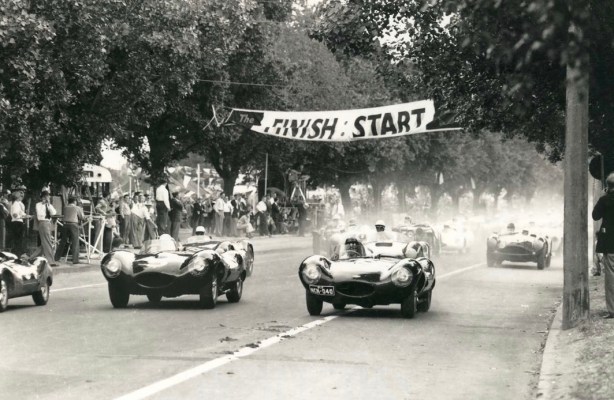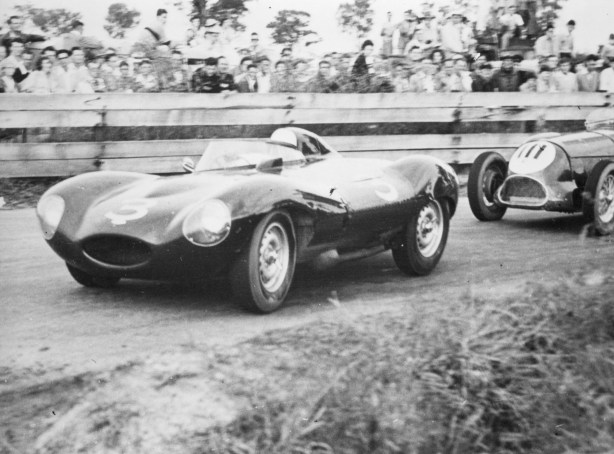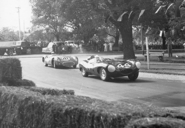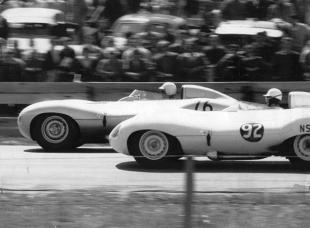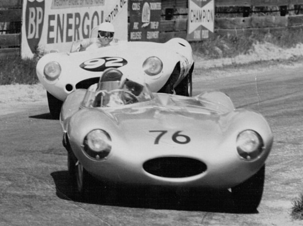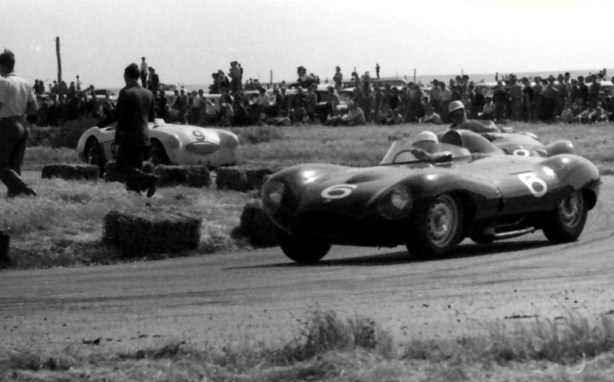 He was followed by Bonnier, Schell and Brabham, with Shelby a wheel’s distance ahead of McLaren and Stillwell. By lap four Moss had surged away to a 60-yard lead from Brabham’s Cooper T45 with the Schell, Bonnier and Shelby Maseratis and McLaren on his tail. The rest were Ross Jensen, Stillwell, Clark, Neil, Mansel and Syd Jensen.