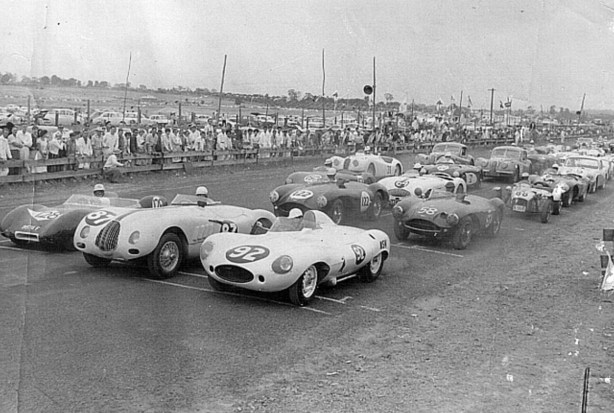 From the left it’s Jo Bonnier #2529, Carroll Shelby #2534, Harry Schell #2533 and Bib Stillwell #2516. Three other 250Fs were entered that weekend: Ross Jensen #2509/2504, Gavin Quirk #2504/2509, and Johnny Mansel #2508/2513.