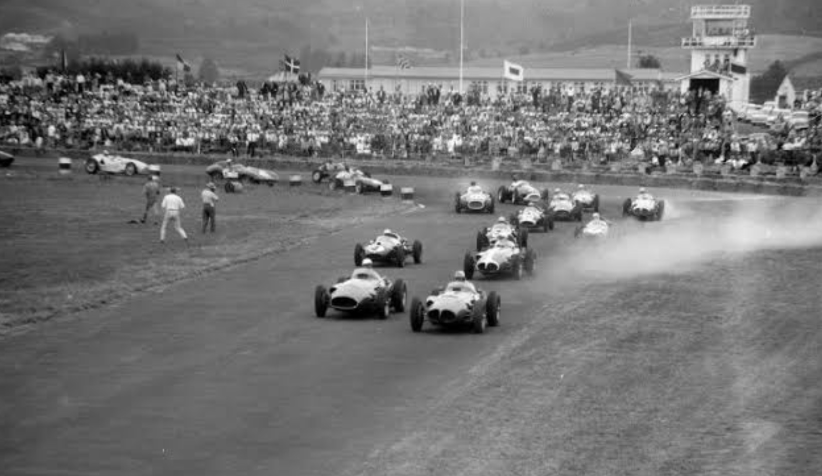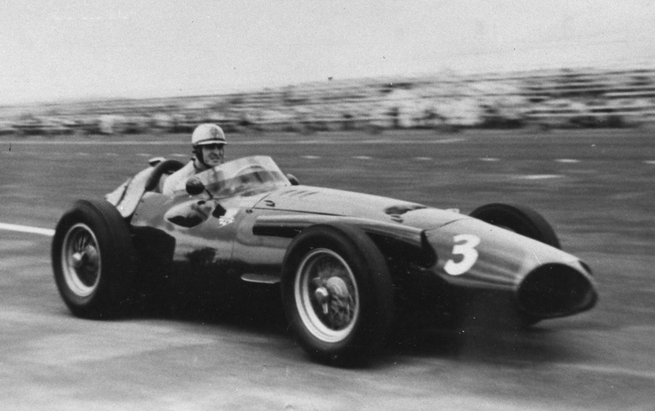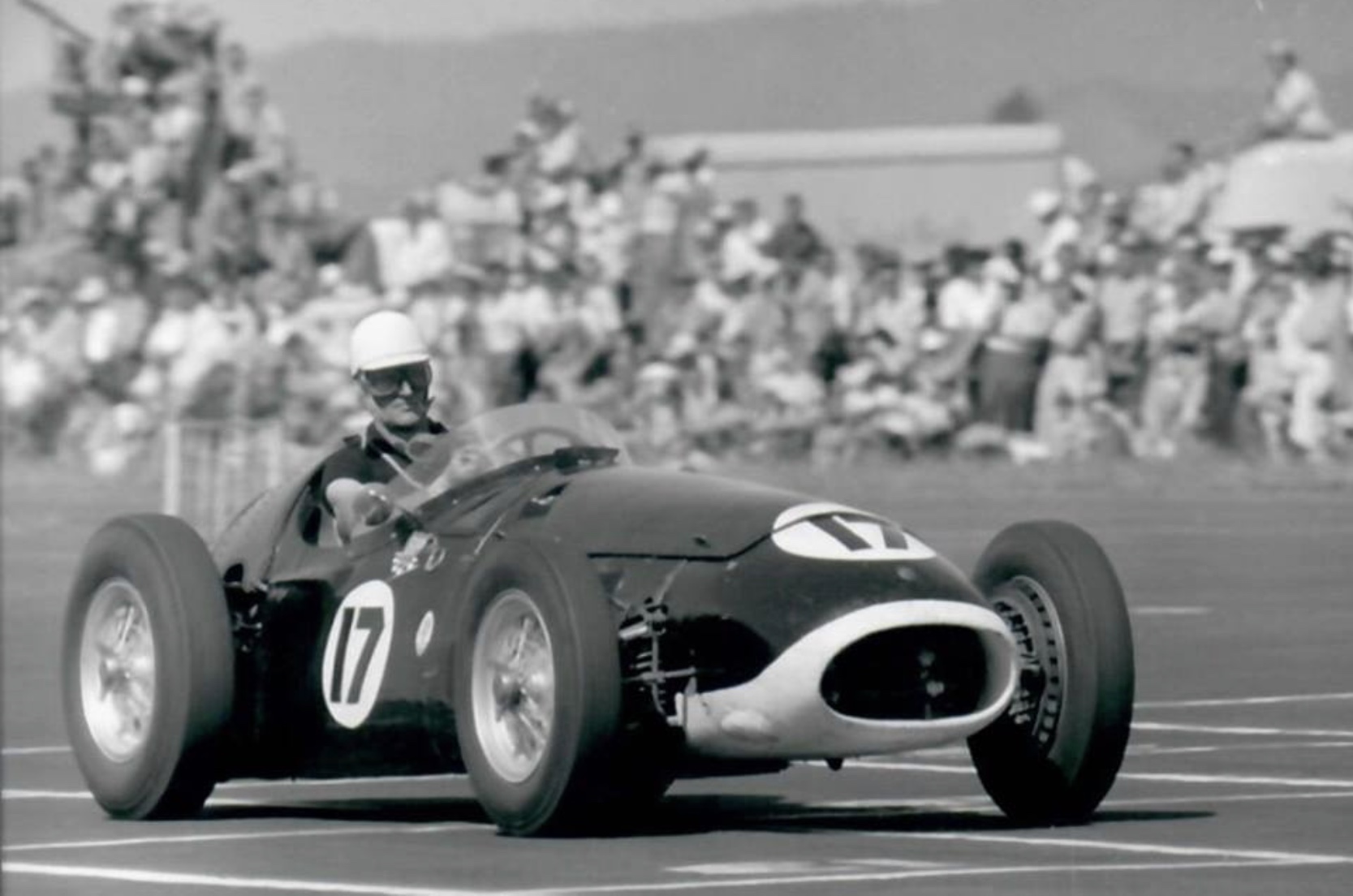 ‘By a display of his driving at its most superb, Moss cut out three of the world’s best drivers in a matter of half a mile, roaring into Pit Straight in the lead at the end of the first lap, an astounding piece of driving.’