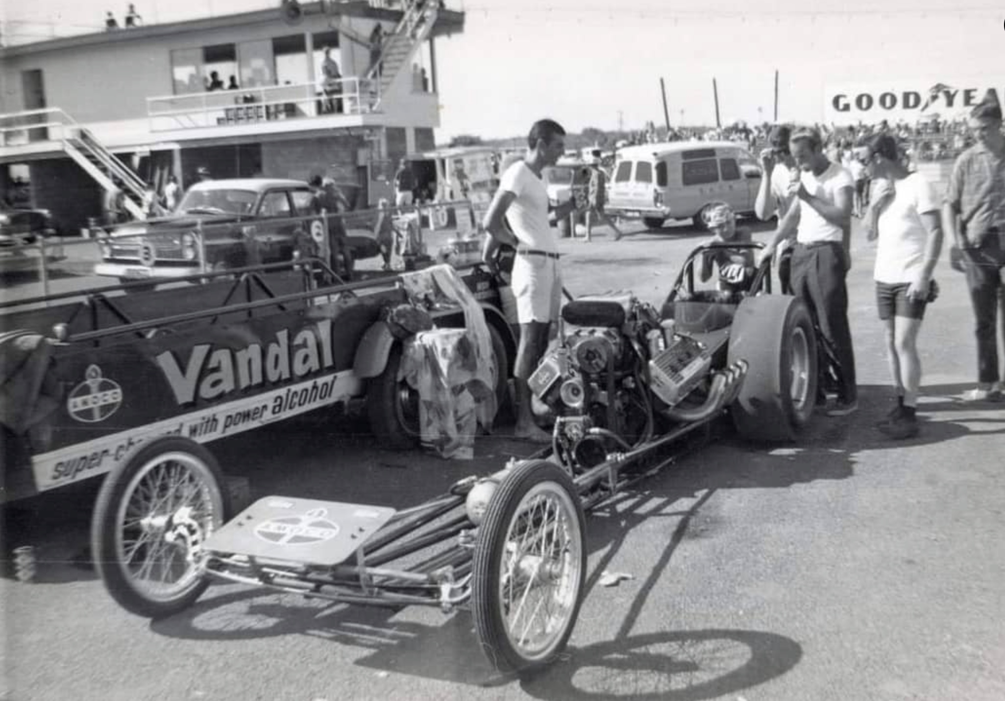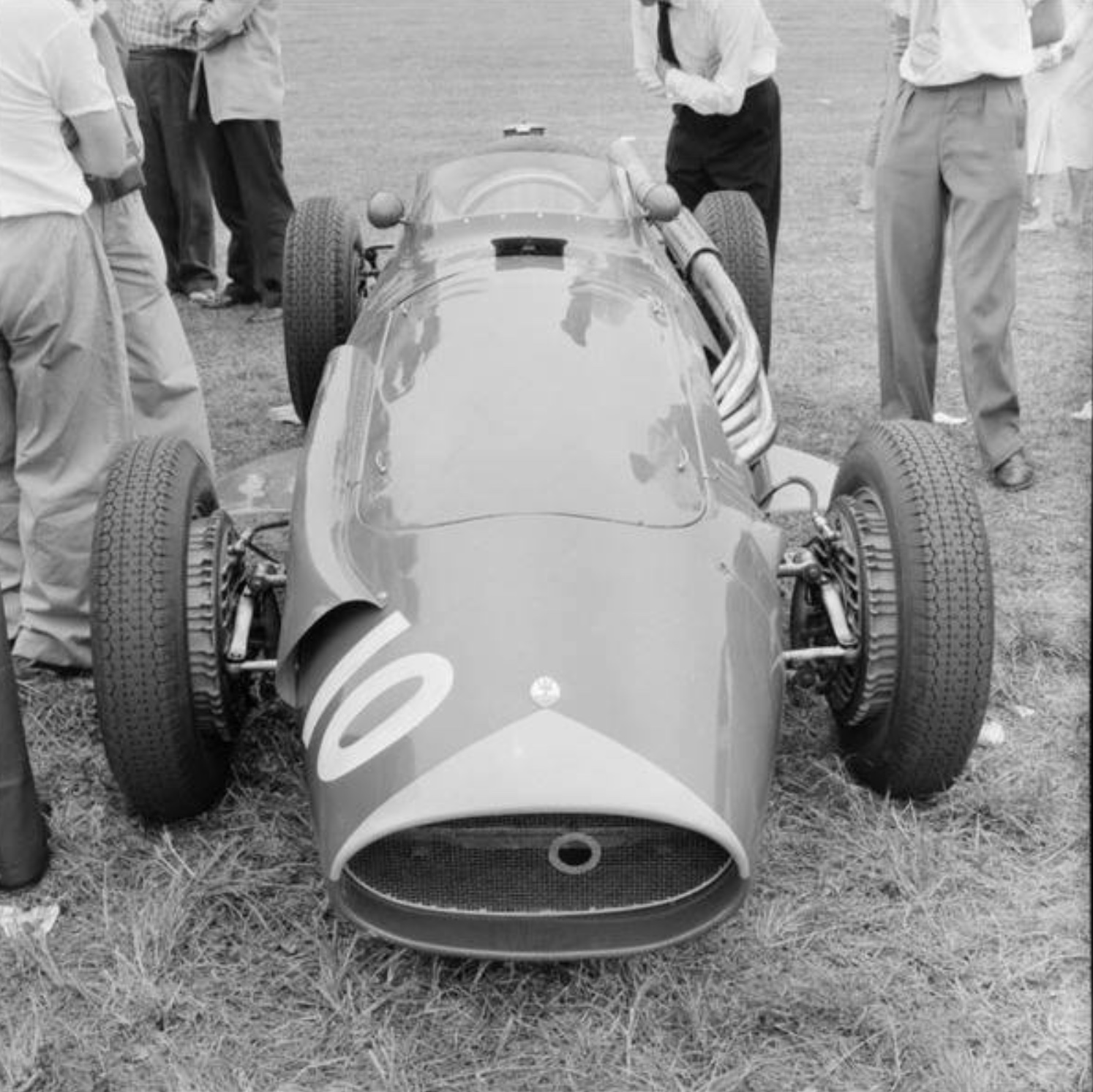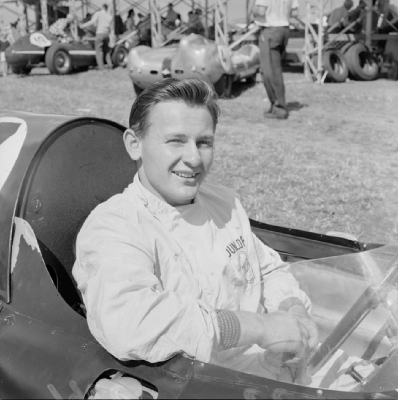 At the circuit, much to the crowd’s disappointment, Moss broke a halfshaft. Brabham had a spare Cooper and, without hesitation, offered the part to the Moss crew, who set to work to replace the part.