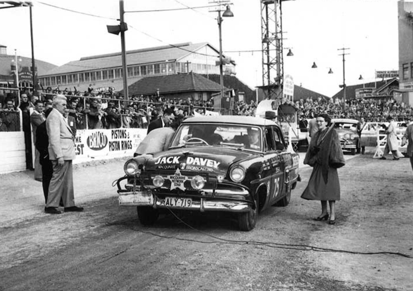 ‘The Minister of Transport, the Hon. J. Mathison, added prestige but not skill to the occasion, and the field got away after a misunderstanding which left Flockhart stalled on the line, to be pushed away, the length of Pit Straight behind the remainder of the field.’