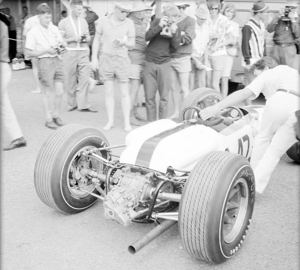 Ferrari gave it a whirl on Richie Ginther’s Ferrari 156 at Reims during practice for the 1961 French Grand Prix, he didn’t race with it, so presumably the jury was out as to its performance. That’s Carlo Chiti with the top of his head chopped off.