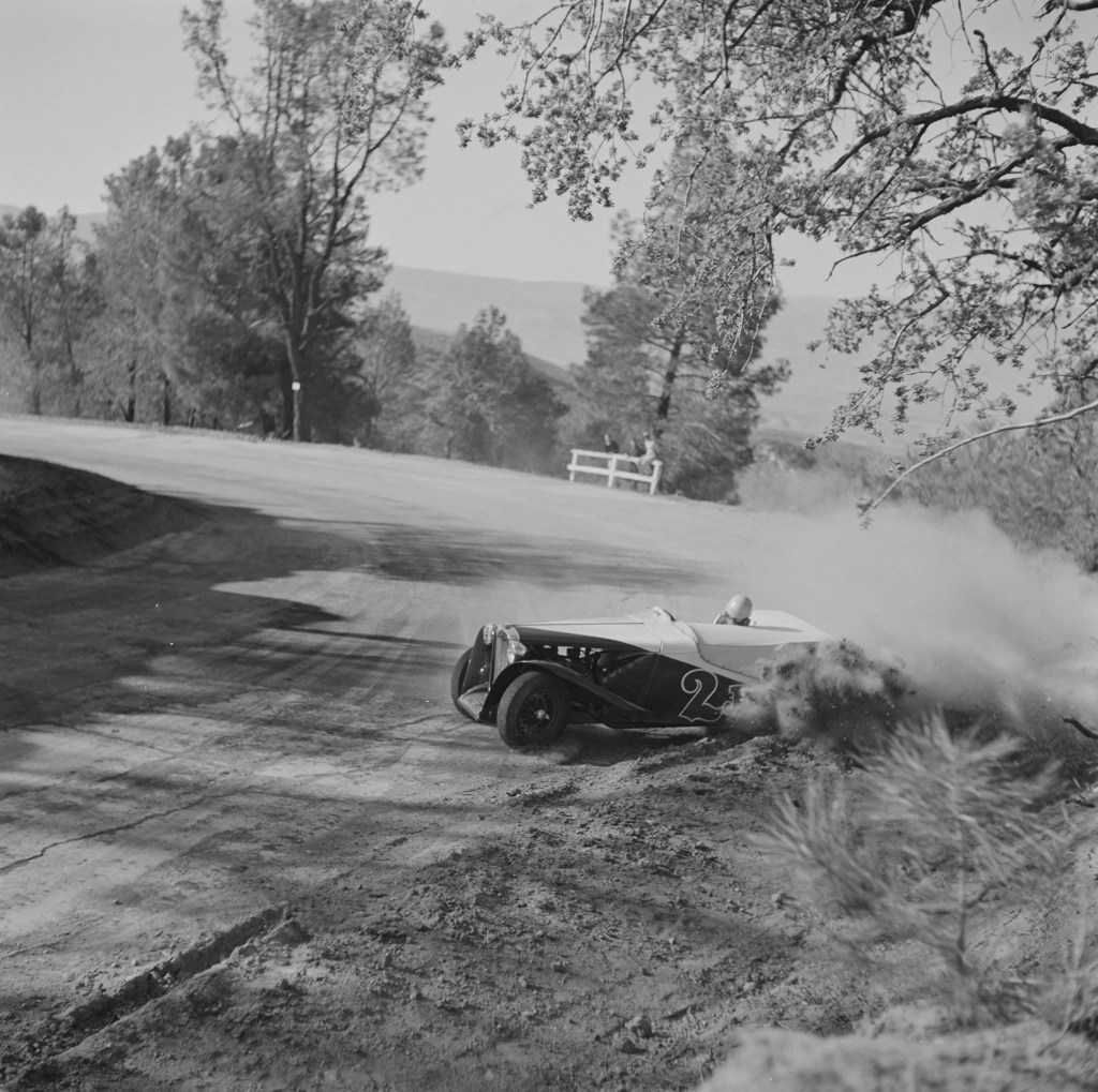 And below Richie all, fast and loose in his competition debut at Sandberg Hillclimb on April 8, 1951. The car is Bill Cramer’s MG TC 2 Junior Ford V8, the poor little chassis would have been groaning at the seams…