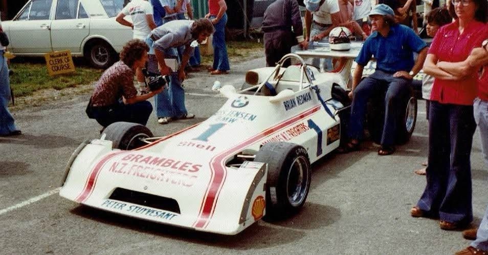 Brian Redman contesting the 1976 Teretonga International aboard a Fred Opert Chevron B29 BMW 2-litre Euro F2 car in the Rothmans International F5000 Series.