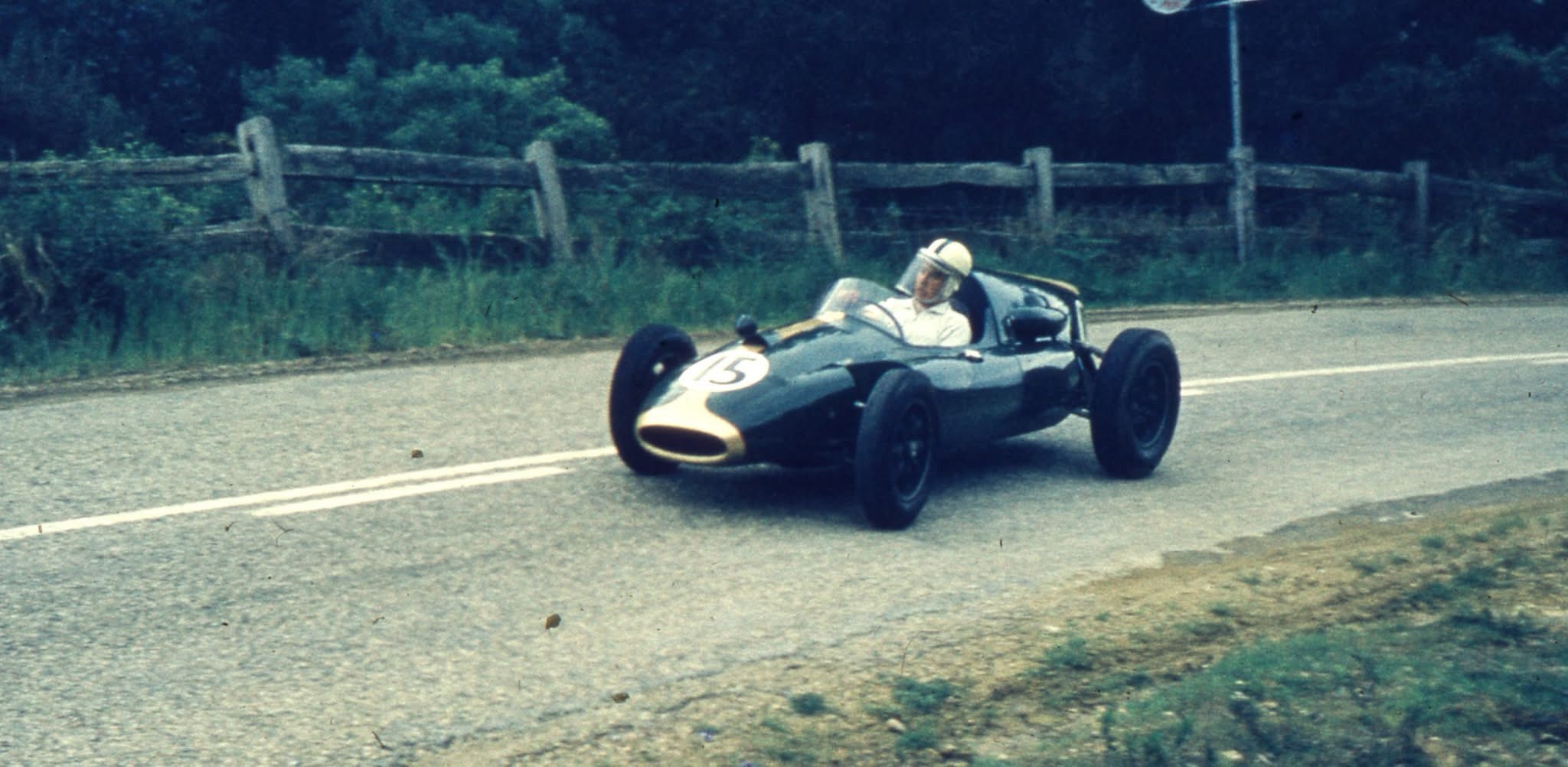 Here he is on the Teretonga International grid on pole at right with Denny Hulme’s Cooper T51 Climax, Pat Hoare, Ferrari 256 and Tony Shelly’s Cooper T45 Climax – with ? Lycoming Special looming large at the far right.