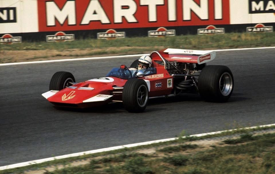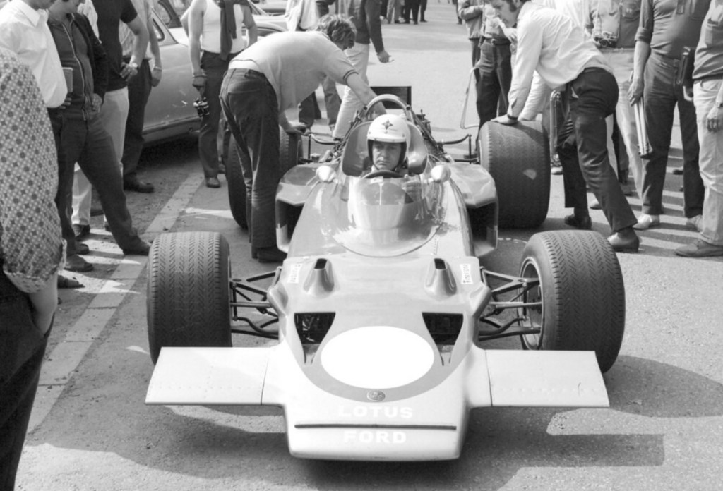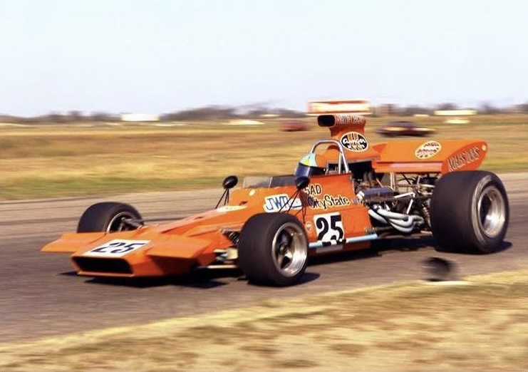 After the first couple of laps Allison eased back a bit from the Grace Bros car but found McCormack’s Elfin MR6 harrying him. Jon Davison was driving his Matich well with fellow Matich racer Goss in heaps of strife with a badly misted visor after he’d accidentally wiped the demisting fluid off it before the race.