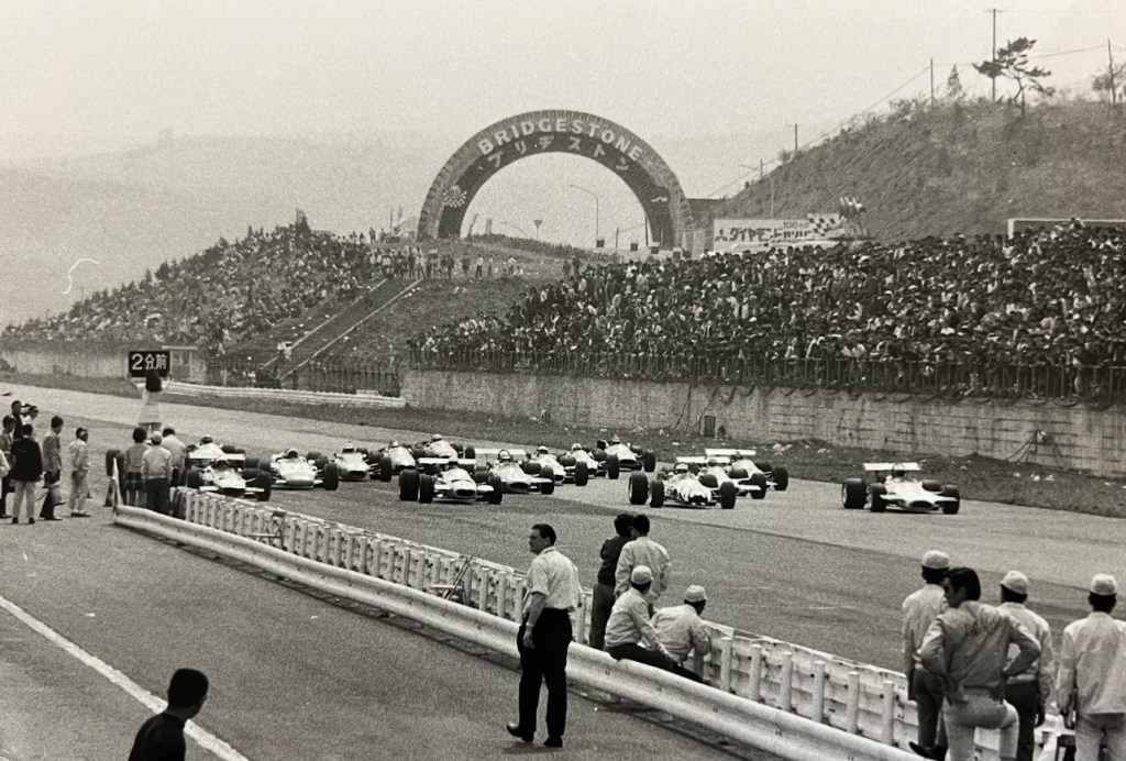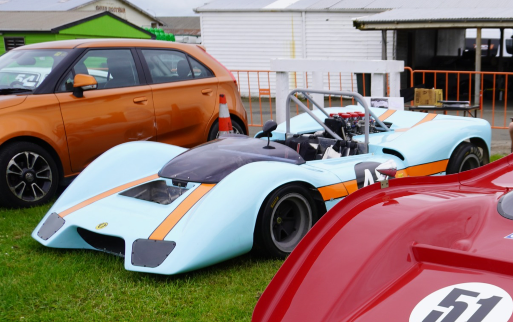 Crowded as anything for competitors but great for spectators, here the Shell tent during the 1975 Tasman round with Chris Amon’s Talon MR1 shot front and centre. Then Jim Murdoch’s Begg 018, Kevin Bartlett’s Lola T332, with Graeme Lawrence’s #14 T333 airbox there too.