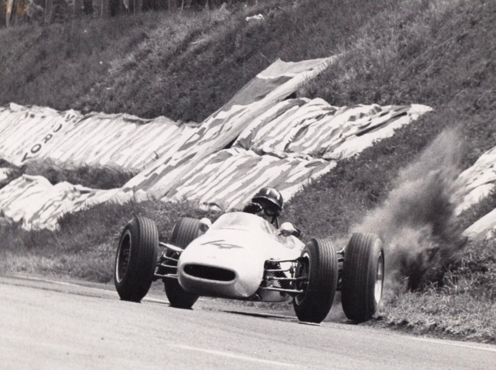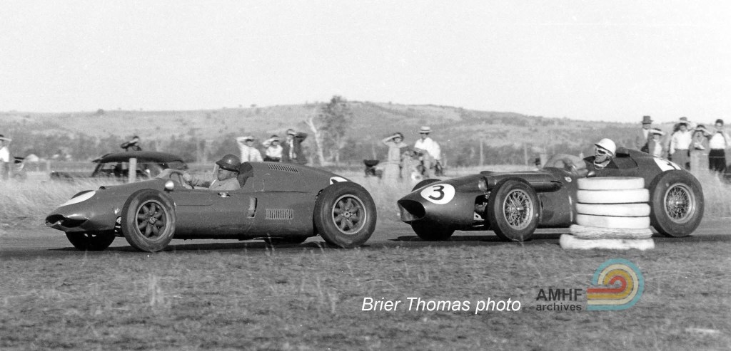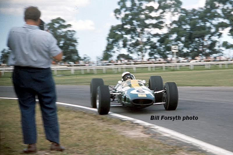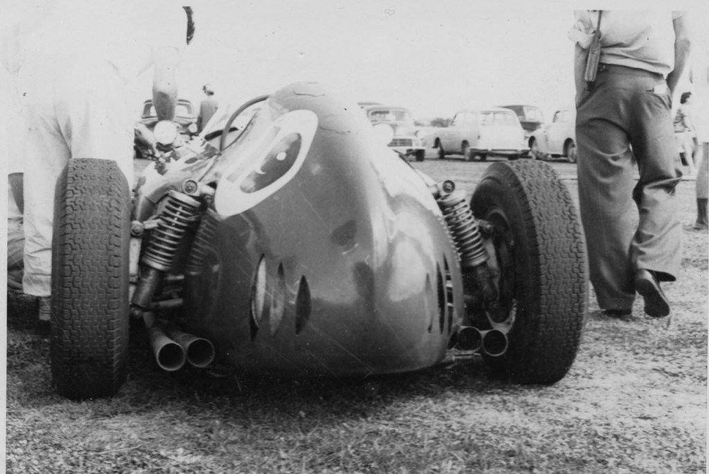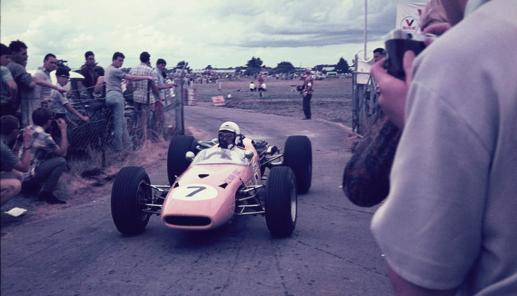 ‘However, KB hit a patch of water and spun off while Walker, trying to avoid the red Lola, speared off into the long grass on the inside of the circuit, heading for Len Lukey’s cow sheds. Bartlett was the first to recover and regained the circuit to win by 23 seconds from John McCormack, with a very angry Johnnie Walker filling third place in a Lola with a very battered nose.’