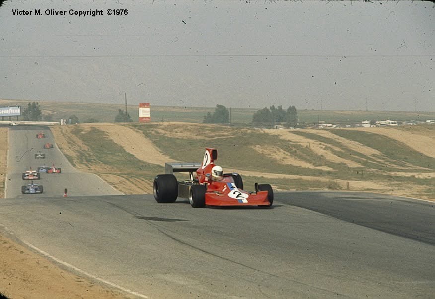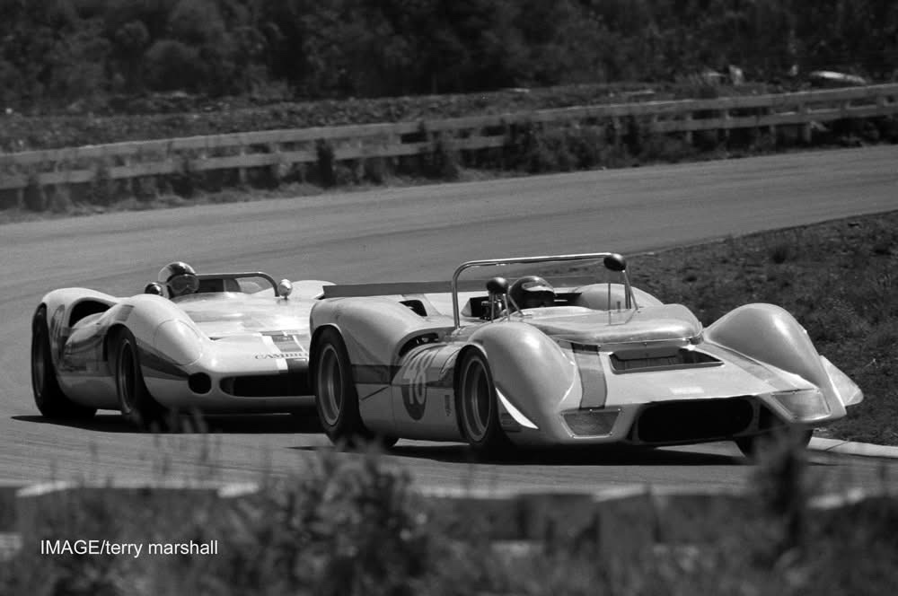 Enno Buesselmann retired his Elfin 622 Lotus-Ford ANF2 car after a dive under Graeme Lawrence at Firestone didn’t end well; he speared off onto the swamplike infield from which there was no escape.