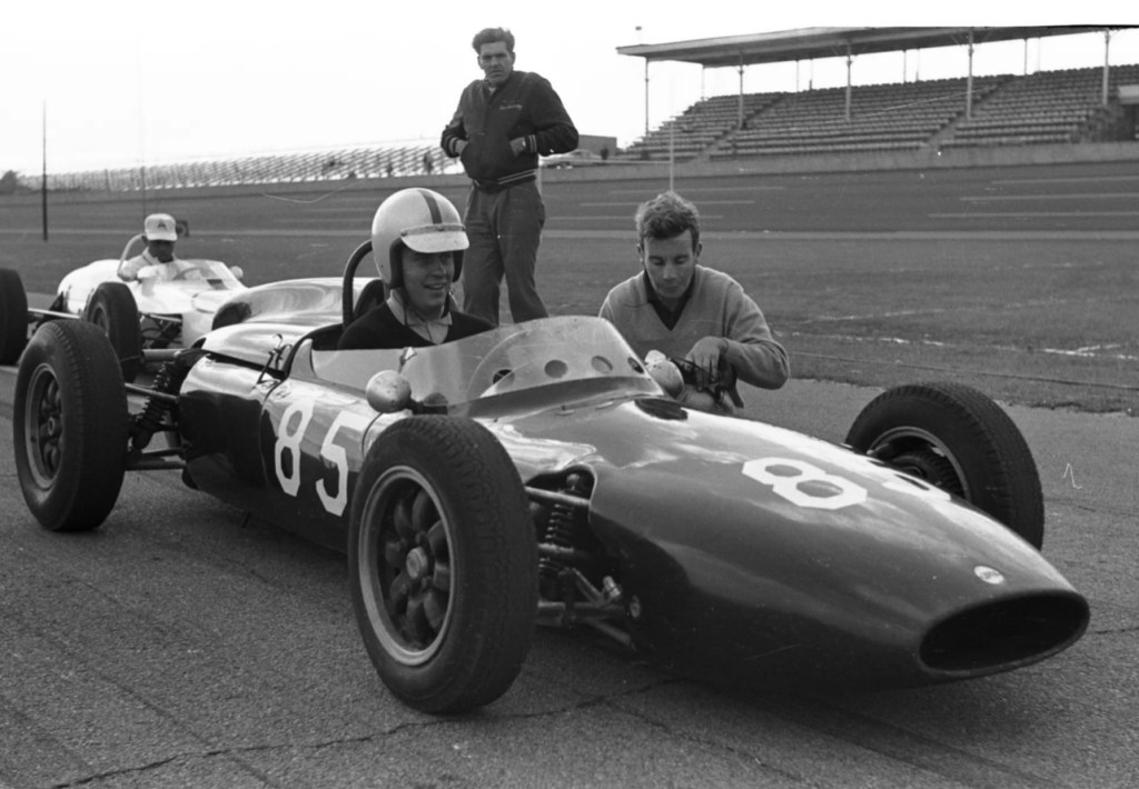 Bob Jane’s boys went for a two-race format, 30 laps, or thirty miles each. John McCormack took pole with a 39.8-second lap – under the magic 40 seconds – from Max Stewart on 39.9 and KB 40 seconds neat.