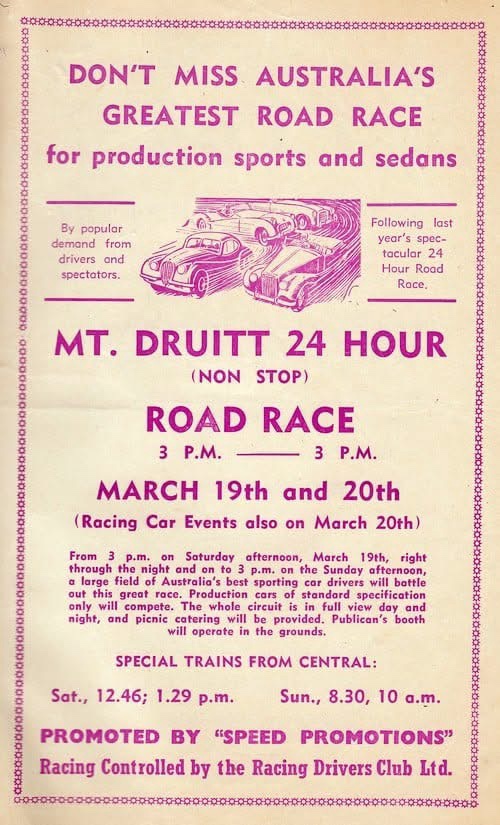 Reg Hunt won the South Pacific Championship that weekend aboard his Maserati 250F from Jack Brabham’s Cooper T40 Bristol, Kevin Neal, Cooper T23 Bristol and Brydon’s Ferrari. Harvey’s gearbox misbehaved in practice, so the OSCA didn’t start the race.