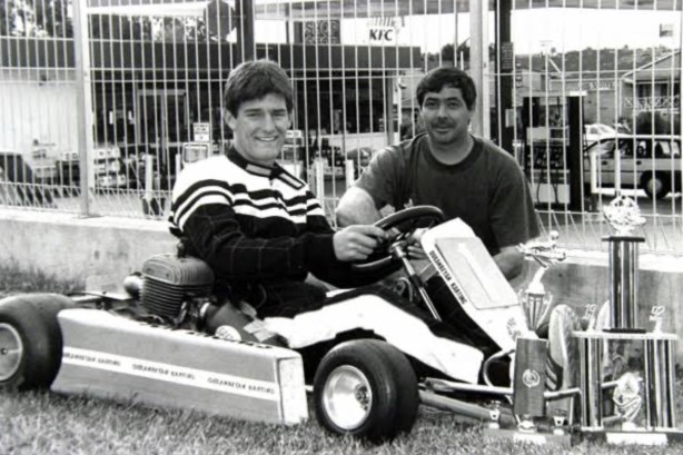 The author lines up on the front row of the grid, Dunedin Wharf Circuit 1984. Definitely round the houses (G Bain)