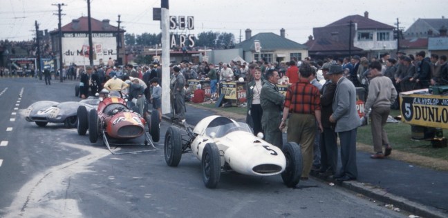Angus’s Cooper T45-Climax on Andersons Bay Road, Dunedin, around the time the film crew took their footage.