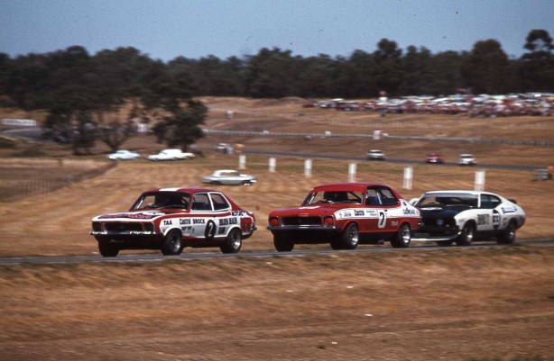 Dick Simpson’s ripper shot (above) is Kevin Bartlett traversing Hell Corner at Bathurst during the Easter ’68 Gold Star weekend, as is the one below at Forrests Elbow. The stationary shot is the car in its final 2.5-litre Tasman form during the Warwick Farm Tasman round in 1969 with KB at the wheel in the form-up area/dummy grid.