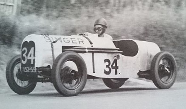 Noel Campbell in his self-constructed and modified Singer Bantam, ‘giant-killer’ of the meeting (unattributed)