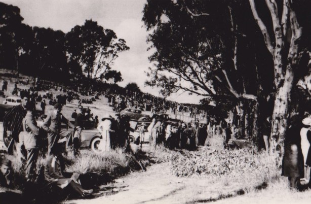 Through the little town of Charleston, with its pub in Onkaparinga Road (still there) the crowds were thick, with stories abounding of drivers stopping mid-session for a ‘nerve settler’ or two! Out of here are frightening high speed kinks, all blind, all crests and dips. Then a blind right hand kink sucks you into Kayannie Corner, the tight right-hander which takes the intrepid racers towards Lobethal. Plenty of folks spectated in this area as they popped off the train from Adelaide.